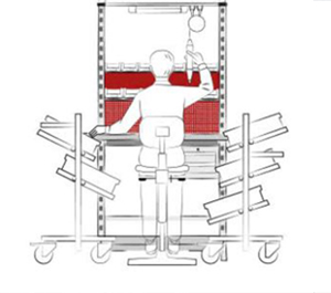 The configuration of the Dynamic workstations, especially if equipped with Smart series trolleys, improves visibility and gripping of the materials and equipment stored in the plastic boxes and on the shelves.